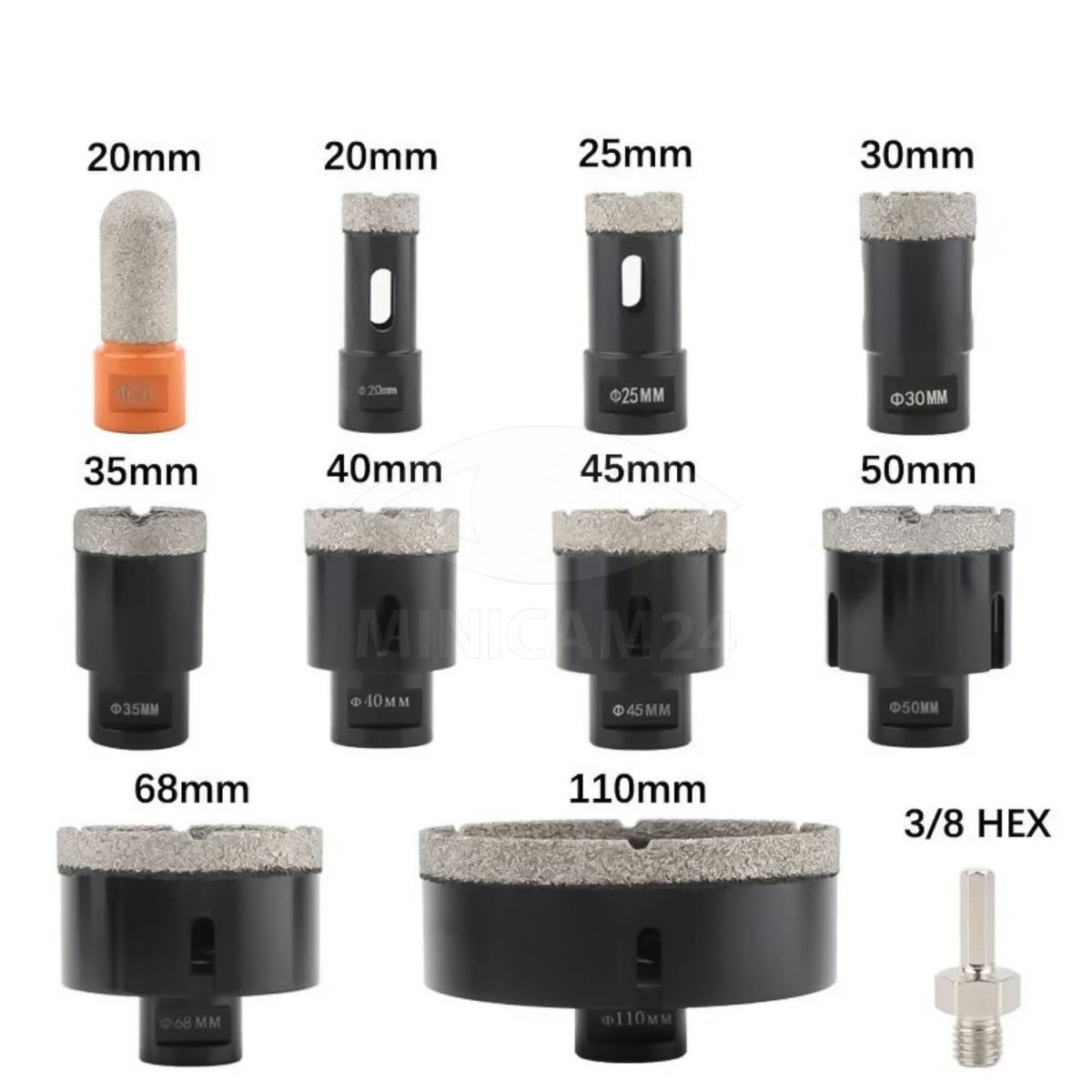 Набор алмазных коронок по керамограниту Doriru 11 шт, 20-110 мм